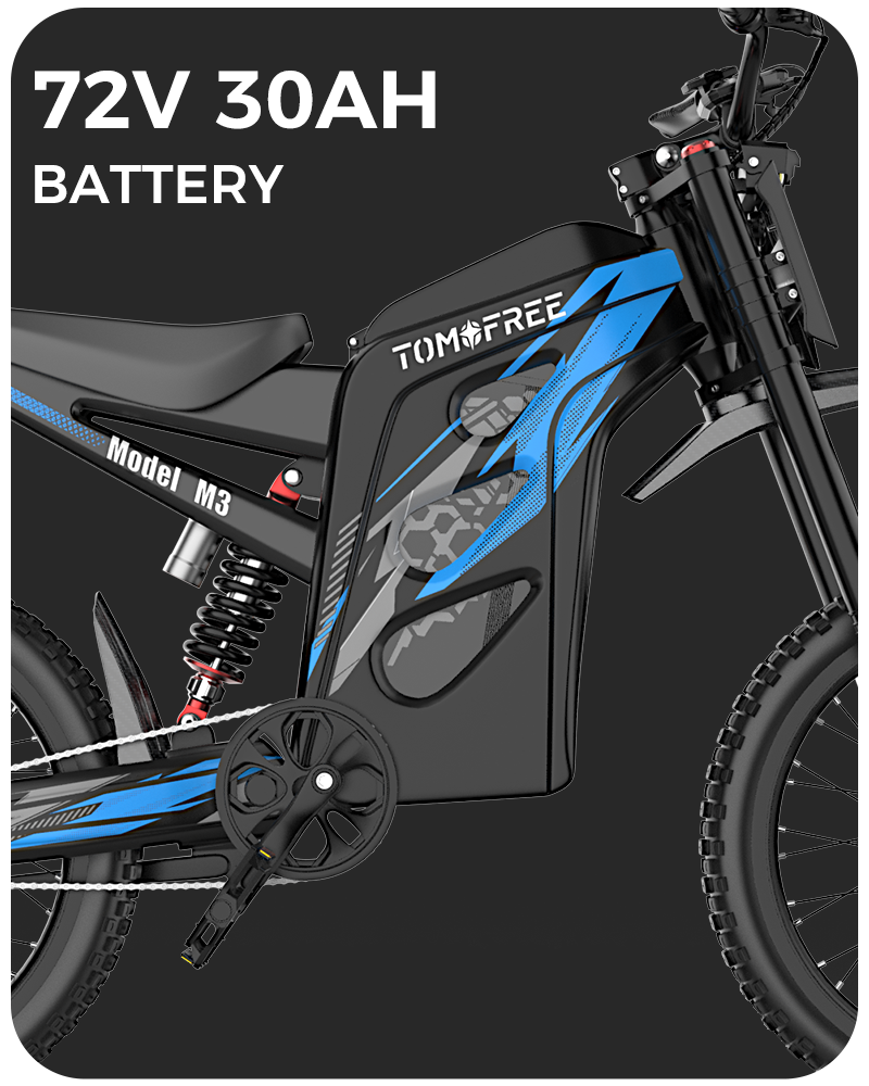 Powered by a 72V 30Ah lithium battery, the M3 delivers an impressive 60+ miles per charge (In PAS LV. 1 mode) of adventure-ready range. The included high-speed charger features an integrated cooling fan for optimal heat dissipation, enabling a full recharge in just 5 hours - so you spend less time waiting and more time conquering new trails.