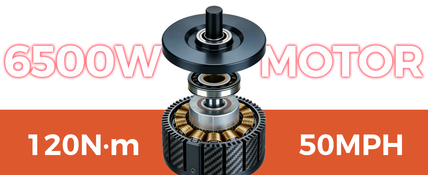 Experience the heart-pounding thrill of the Tomofree M3PRO’s powerful brushless motor. The power output is well-balanced with a peak output of 6500W, making it an excellent match with the 72V 30Ah removable lithium-ion battery pack. Boasting strong, instant torque delivery, this powerhouse conquers steep slopes up to 35°, rough off-road terrain, and challenging trails without breaking a sweat. This results in agile and responsive control across its 3-speed gear system, with a top speed reaching 50 MPH, allowing for aggressive and controlled handling, and providing outstanding versatility in all off-road conditions.