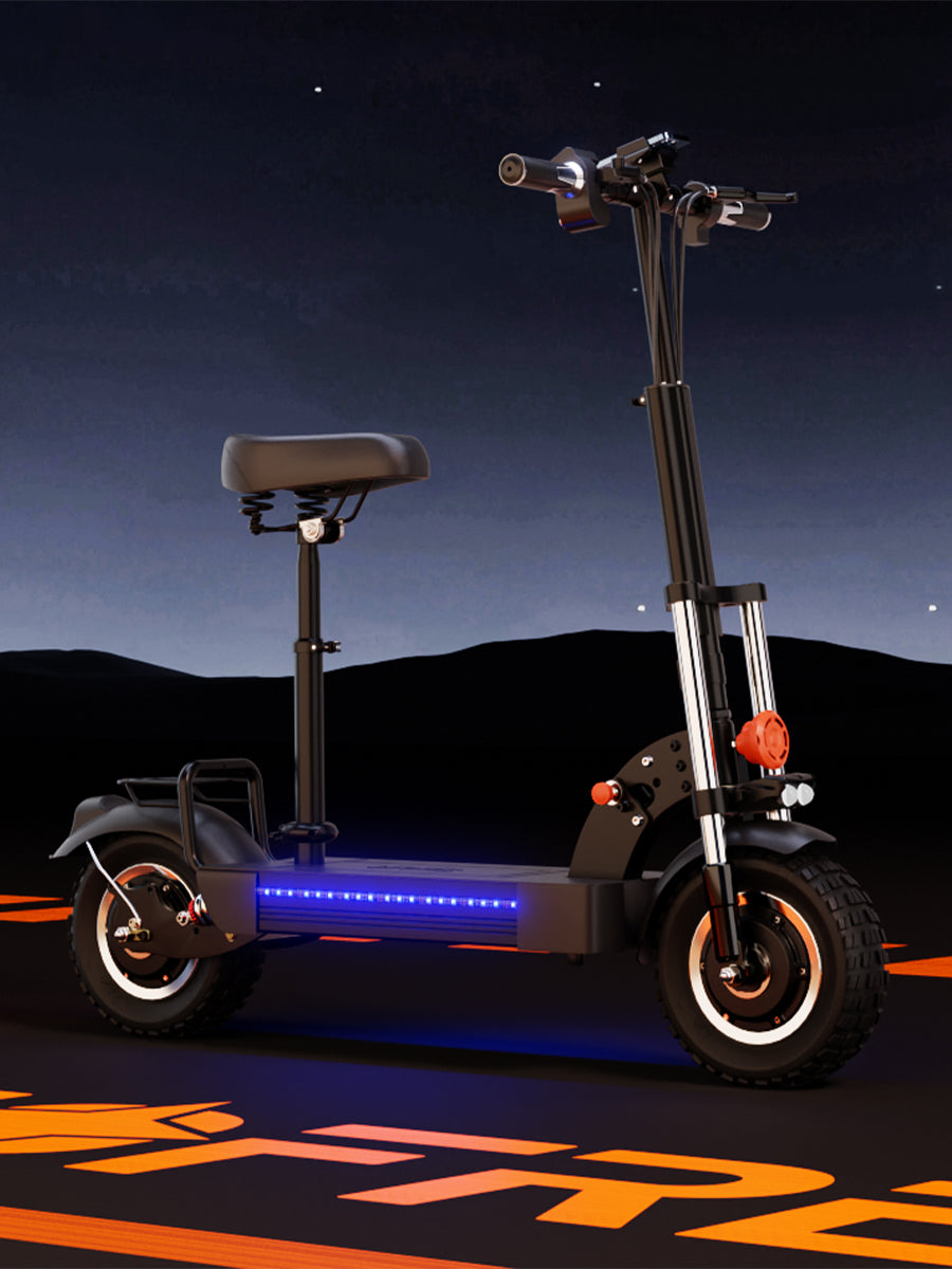 With its powerful 48V 30Ah Li-ion Battery and dual 1200W Brushless Hub Motors, this Escooter delivers exceptional performance, offering swift acceleration and reliable power. Equipped with Dual Disc Brakes and 11" Off-Road Tires, it ensures stability and control on any terrain. Enjoy up to